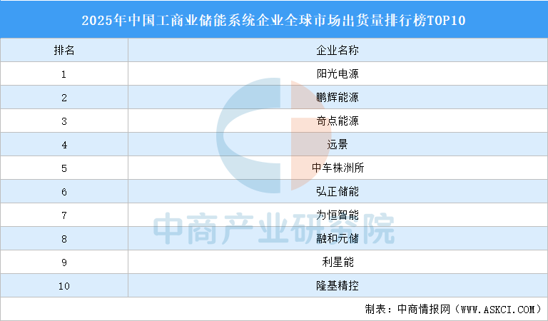中商情报网讯:2025年中国工商业储能系统出货量达24GWh,同比2024年12GWh出货量增长100%。其中2025年海外出货7.5Wh,占比31%。阳光电源全球市场出货量最高,鹏辉能源、奇点能源排名第二和第三,远景、中车株洲所、弘正储能、为恒智能、融和元储、利星能、隆基精控进入前十,依次排名第4-10名。