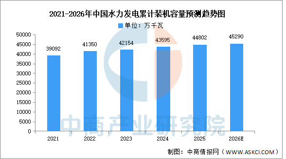目前,中国水力发电在全球和国内能源体系中占据着至关重要的基础性地位。中商产业研究院发布的《2025-2030年中国水电行业调研及发展趋势前瞻报告》显示,2025年中国水电累计装机容量44802万千瓦,增长2.9%。中商产业研究院分析师预测,2025年中国水电累计装机容量将达45290万千瓦。