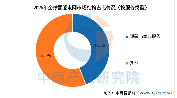 随着全球智能技术应用基础的扩大,以及IT系统全球化复杂程度的提升。中商产业研究院发布的《2025-2030年中国智能电网行业市场前瞻与未来投资战略分析报告》显示,2025年,部署与集成服务占据了超过44.1%的市场份额,并有望在未来几年进一步增长。