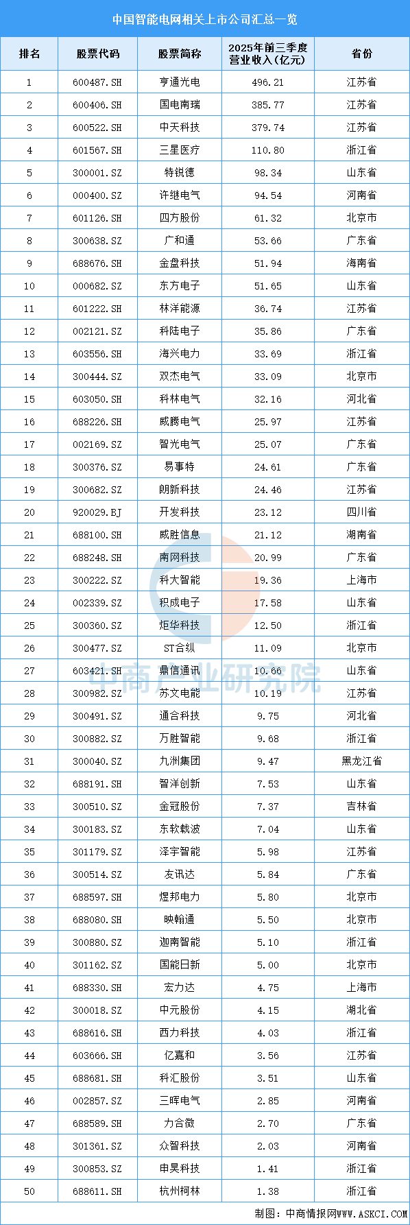 目前,智能电网相关A股上市企业主要分布在江苏省,共9家。浙江省共8家,排名第二。广东省和山东省均为7家,并列第三。