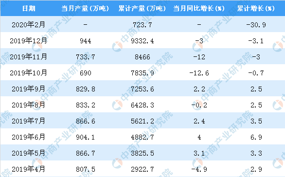 中商情报网讯:据中商产业研究院数据库显示,2020年1-2月全国磷矿石产量有所下降,2020年1-2月全国磷矿石产量为723.7万吨,同比下降30.9%。