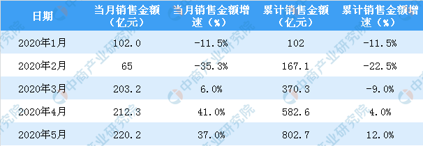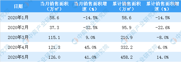 2020年5月世茂房产销售面积及金额情况统计