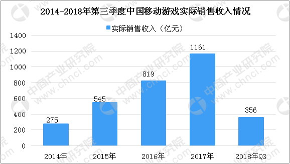 中商情报网讯:随着智能手机的普及,近年来,中国移动游戏市场呈百花齐放之势,在品类丰富的基础上,产品性能、画面不断实现突破,也一度成为市场核心竞争点。移动电竞已经成为游戏市场主流;国产动漫内容正在发力,成为资本注入的下一个领域;直播平台正在向泛娱乐直播上进行转型。在2018年第三季度中国移动游戏市场实际销售收入及增长率情况中,数据显示,2018年三季移动游戏实际销售收入达到356.1亿元,同比增长率为16.6%,环比增长为9.7%。