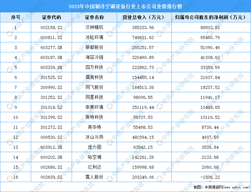 中商情报网讯:近日,上市公司陆续公布经营情况。制冷空调设备行业共有16家公司公布2023年经营情况,16家公司营业收入合计379.44亿元,归属母公司股东净利润合计37.00亿元。其中12家公司营业收入超10亿元,10家公司归属母公司股东净利润超1亿。