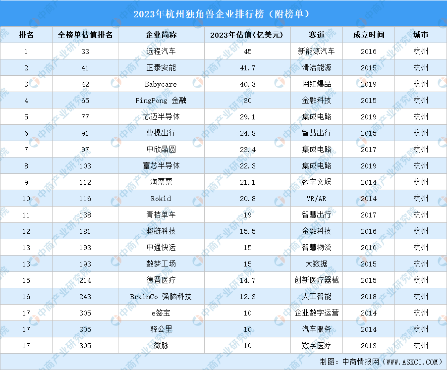 备注:本榜单根据2023年12月31日的估值数据编制,带"*"的企业为当年新晋独角兽。