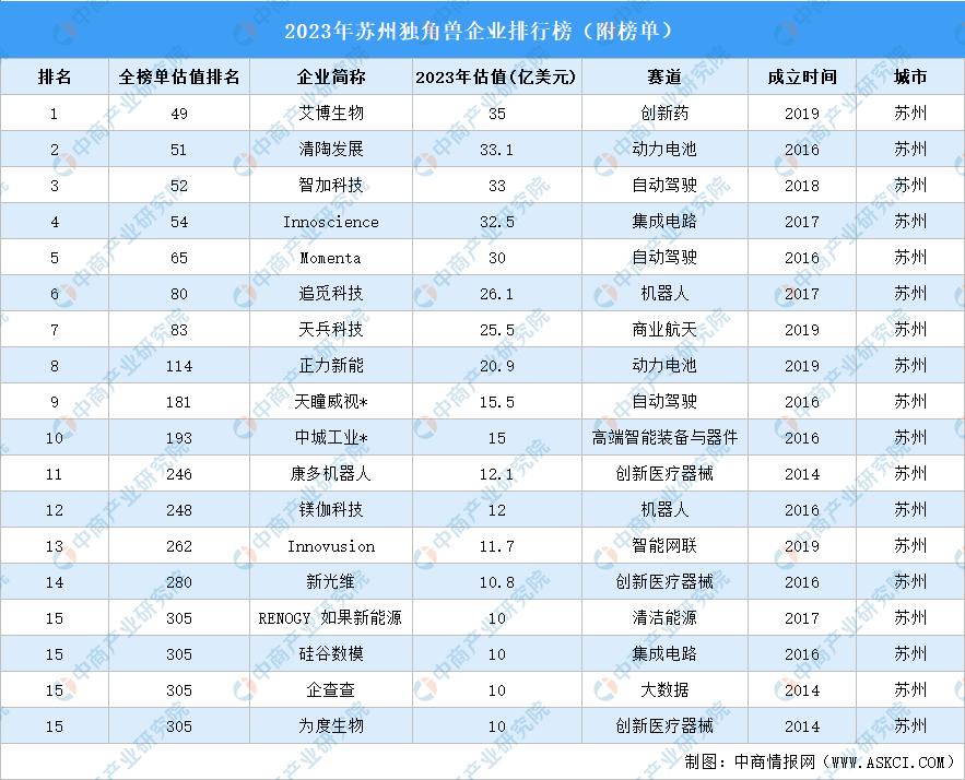 备注:本榜单根据2023年12月31日的估值数据编制,带"*"的企业为当年新晋独角兽。